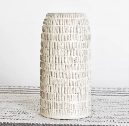 Cream Cross Hatch Vase