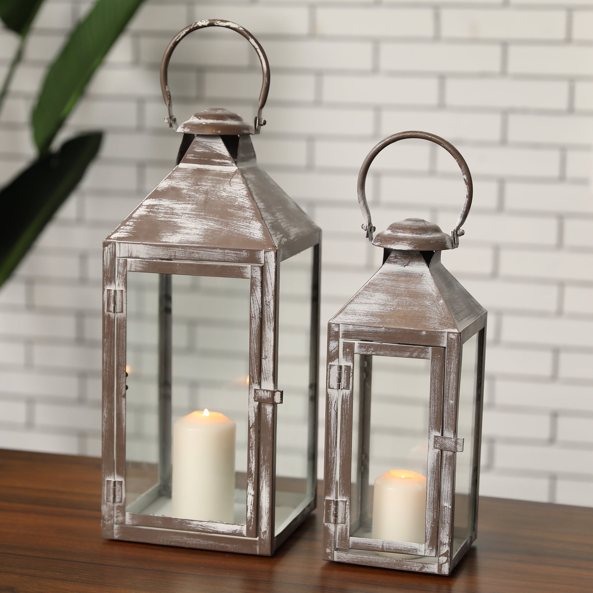Antique Grey Brush Decorative Lanterns -Set of 2 (ONLINE EXCLUSIVE)