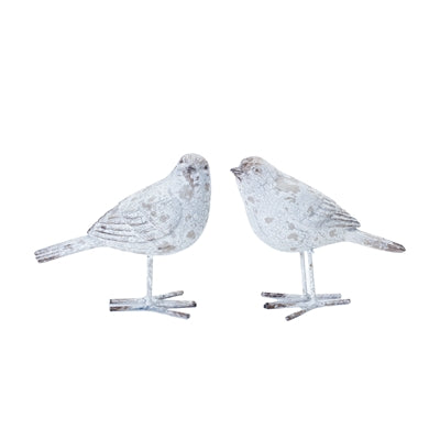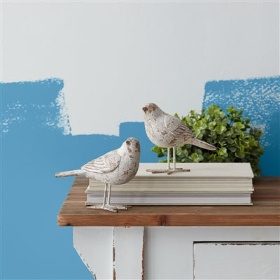 These carved birds appear to be white-washed wood, but they are resin! Perfect as a pair! Available in 2 styles: looking forward (A) and back (B). Measures 5.5in