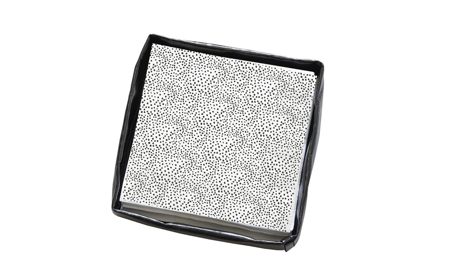 Made of washable paper with black accent, this cocktail napkin holder elevates any napkin. It comes with black and white dotted napkins.