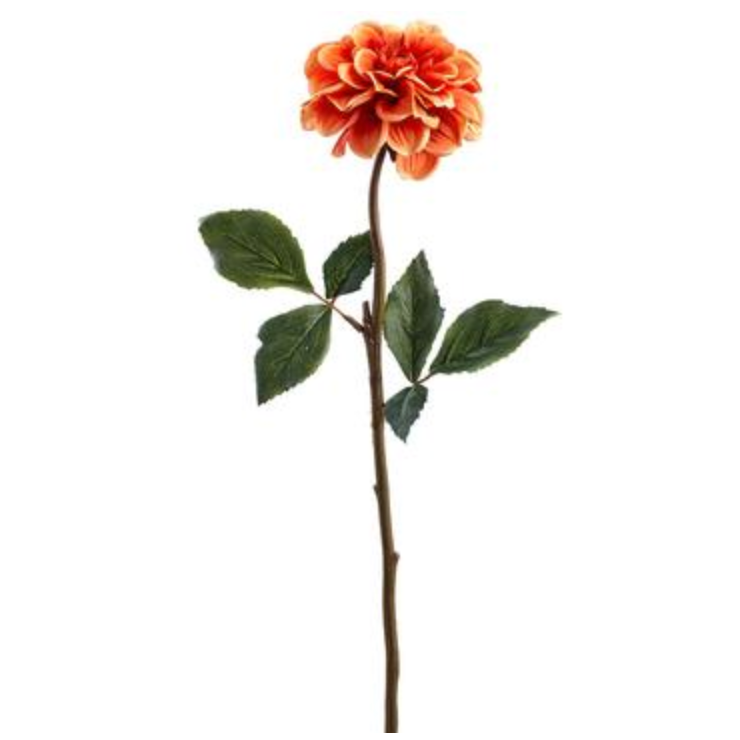 This gorgeous burnt orange dahlia stem is perfect for adding a splash of color to any room. Its natural beauty is sure to bring joy and inspiration to the space and bring a fall seasonal vibe.