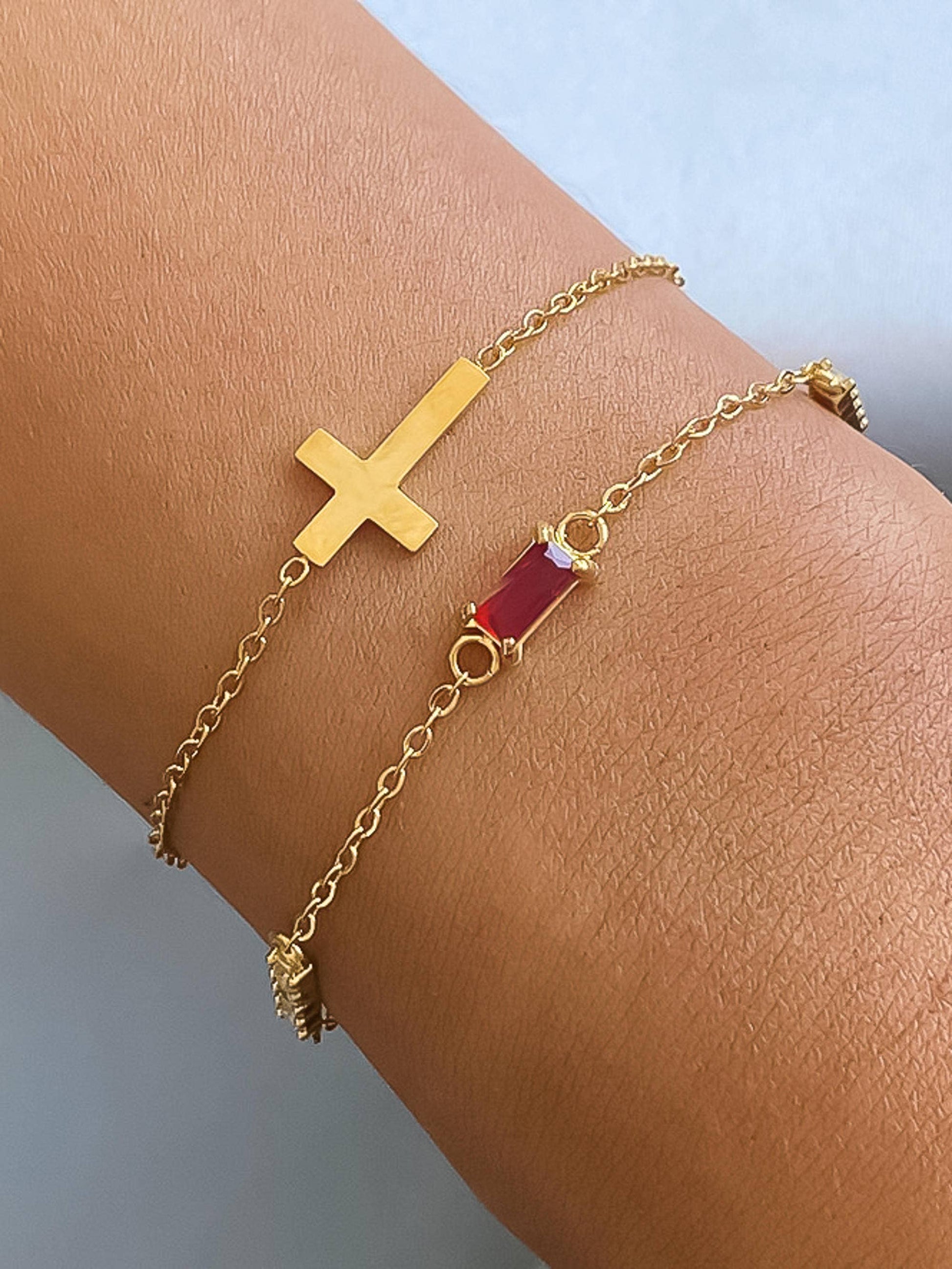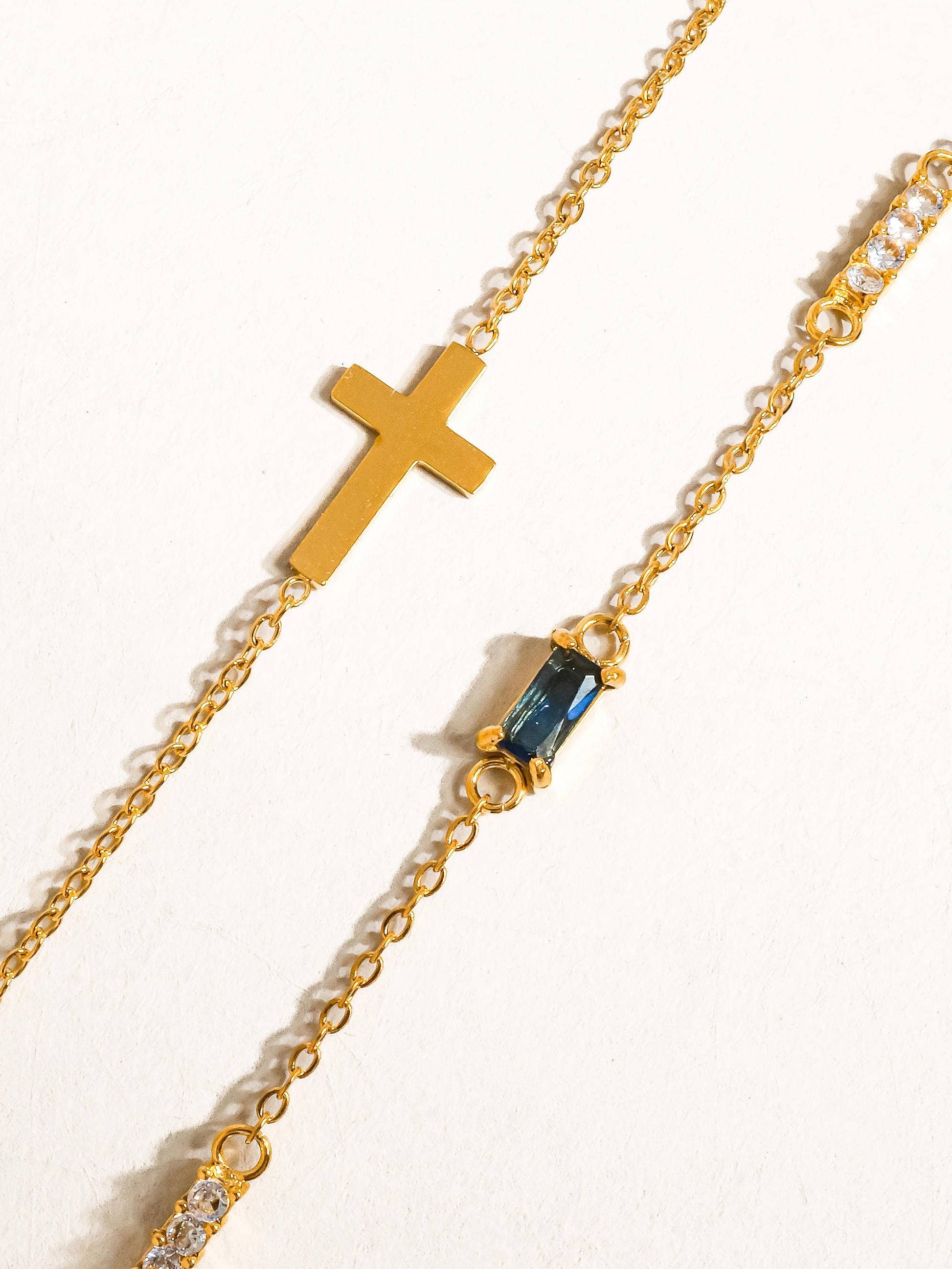 18K Gold Non-Tarnish Layered Cross CZ Bracelet