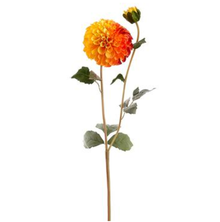 This stunning Orange Dahlia is a beautiful addition to any home or space. Its deep orange shade and delicate early bud evoke a sense of early fall vibrancy.