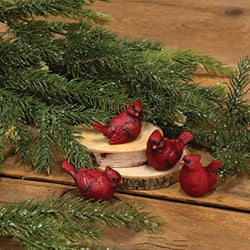 Resin Cardinals are miniature cardinal figures made from detailed carved resin with wintry design. Each cardinal features a realistic texture and a flat side for freestanding display.