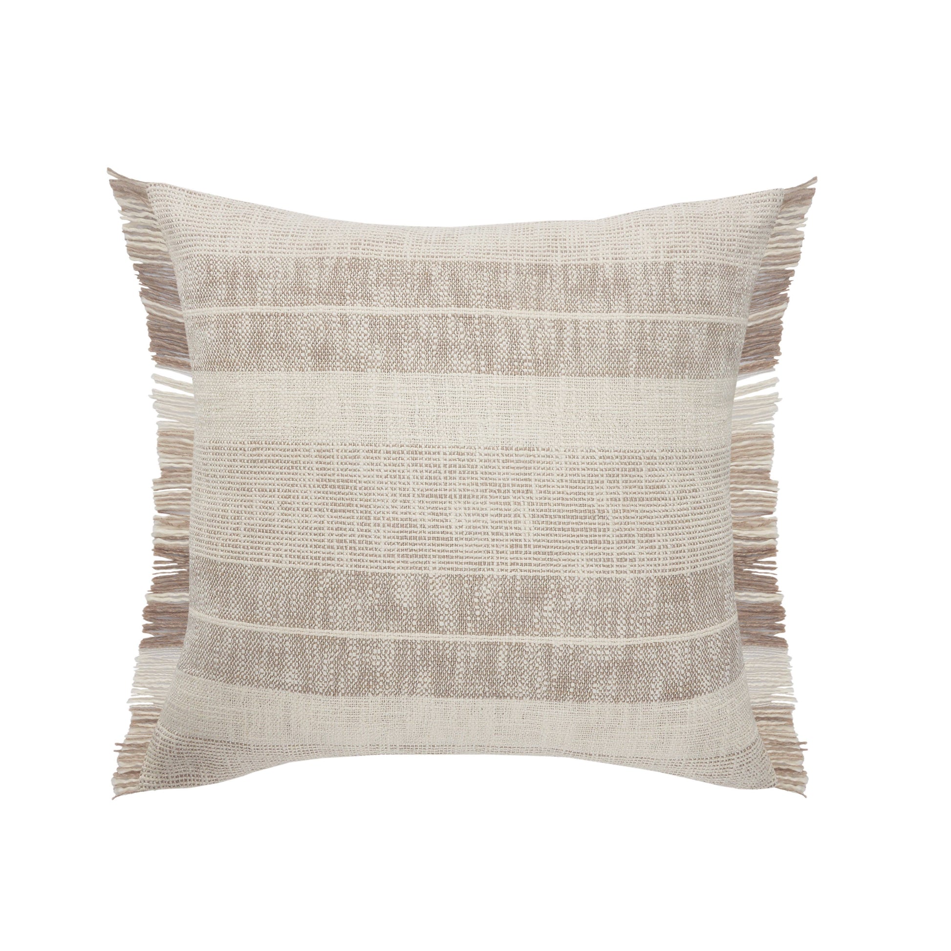 Designed to thrill, this pillow dwells perfectly on a comfy couch, bed, or bench. This pillow is a wonderful accent for the home looking to add a neutral casual piece to their collection. It features a well-toned striped design and textured fringe bordering. Beige and Cream colors. 100% Cotton. Machine Made - . Flat Weave