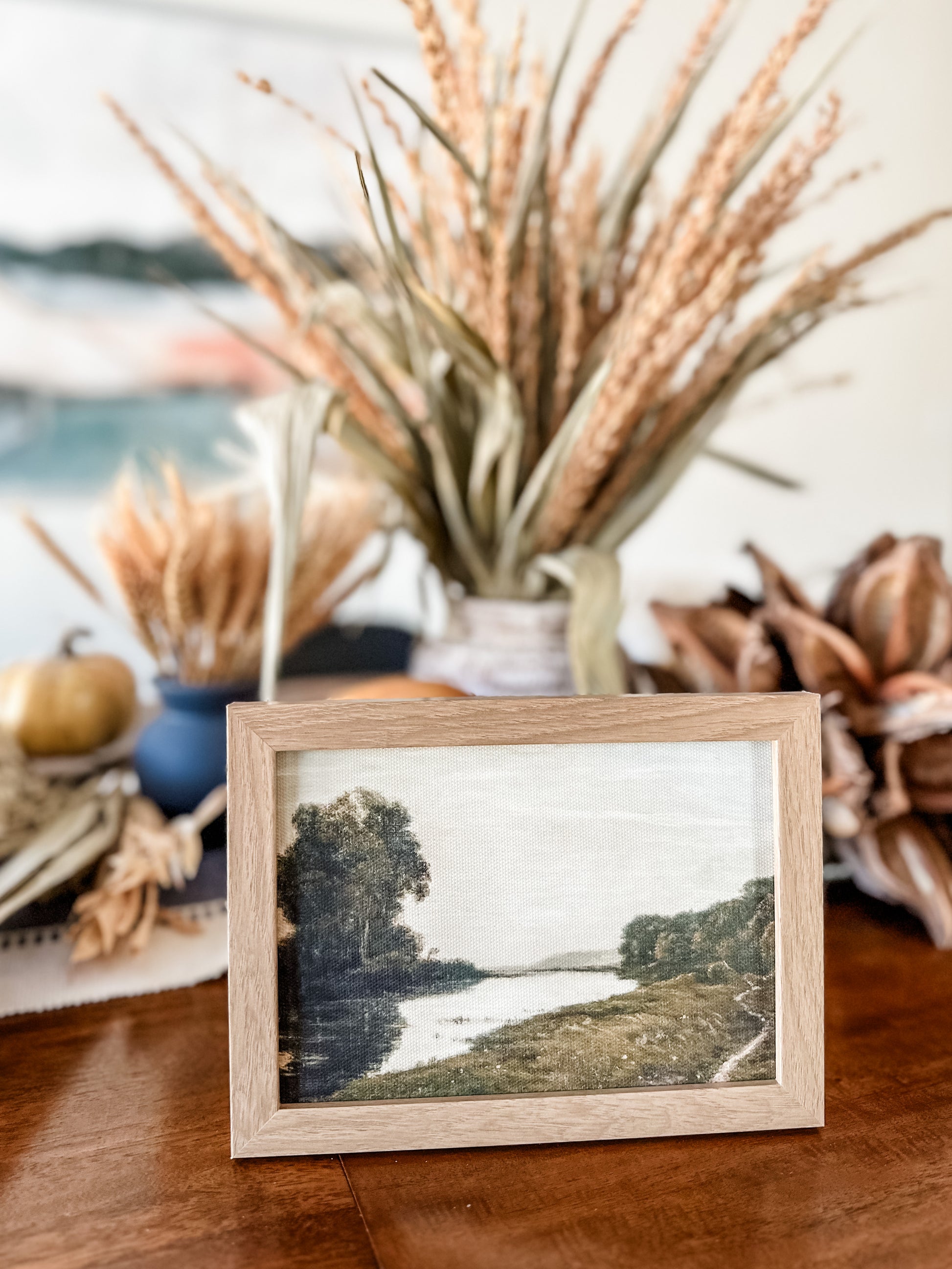 Experience a timeless classic with this stunning Old World Canvas Print - a breathtaking landscape, printed on canvas and in a 5 x 7 wood like frame . The perfect size for placement on a console, or on a riser near your kitchen sink.