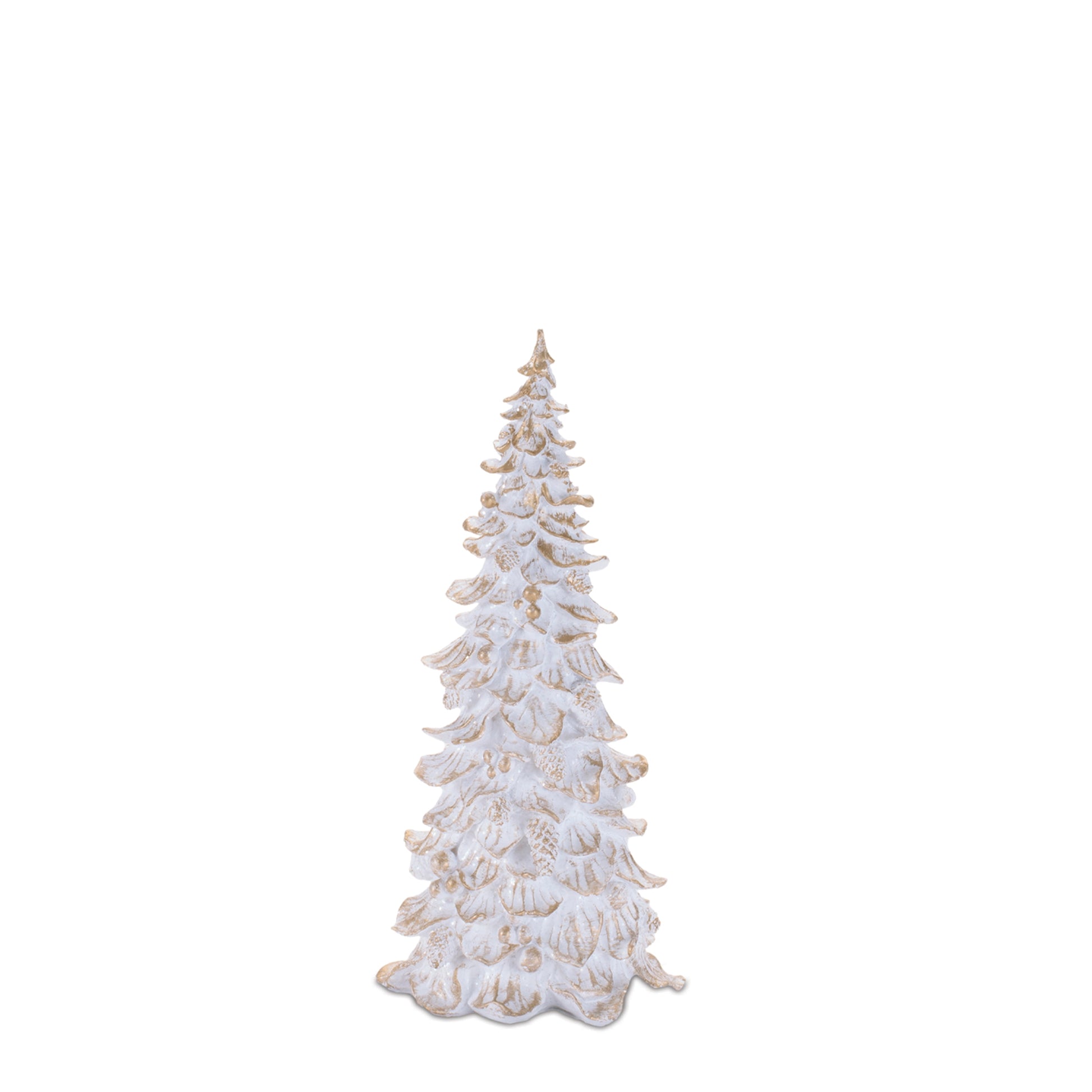 Create maximum impact with these tall resin carved trees! Mimicking the look of wood, they are painted white and carved into a down swept pattern to bring a focal point to your mantle and seasonal designs!