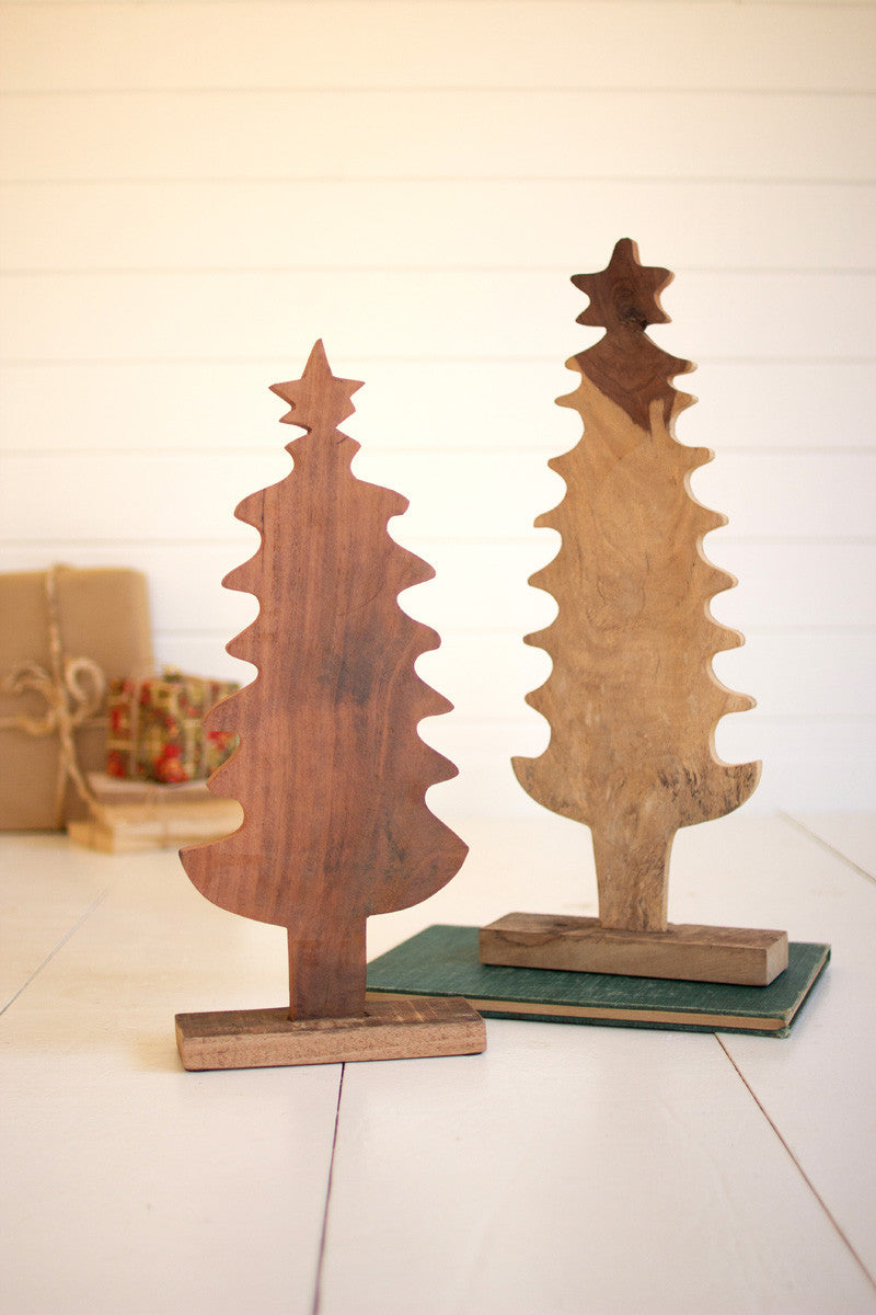These sustainable and eco-friendly Wood Christmas Trees on a Base are crafted with recycled wood, giving your holiday decor a unique rustic-traditional look. Each tree is unique and features various wood grains and knots - truly artisan!
